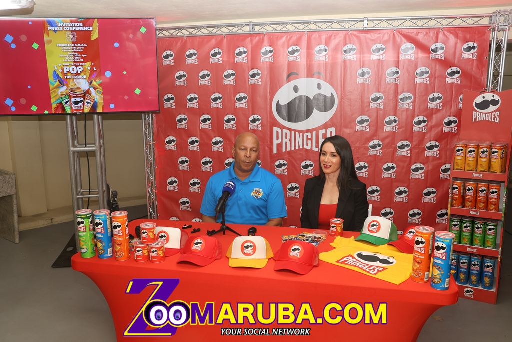 Durante conferencia di prensa yama door di SMAC y COMPRA Aruba a presenta Pringles e snack oficial di Carnaval 72.