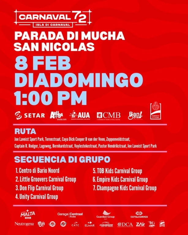 Danki na nos sponser nan di Carnaval 72, Swift Distribution, Compra Aruba, LP Consulting & Services, Trac Car Rental Aruba, Sweet Mamas Jhonny Cake y Sweet Papas Jhonny Cake, Lings Restaurant, Sketch Advertising, PRESS PLAY.